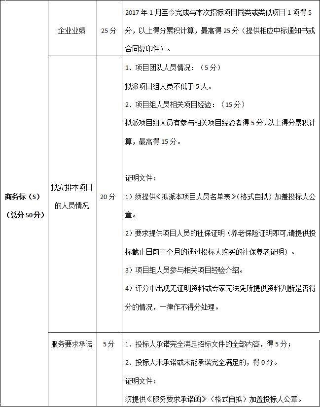 (二)商务评分(满分50分)