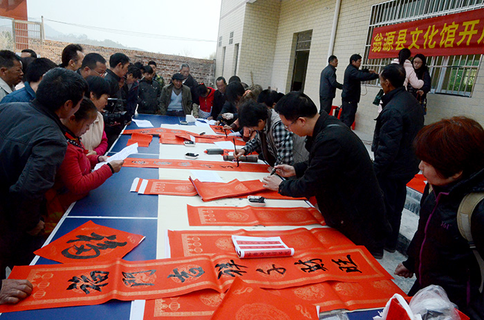 2月9日,由市文化广电新闻出版局主办,市图书馆承办的“情暖革命老区”2015年春节送文化送春联下乡活动在翁源县坝仔镇礼岭村举行,百多幅暖心春联受到了老百姓的热烈欢迎。