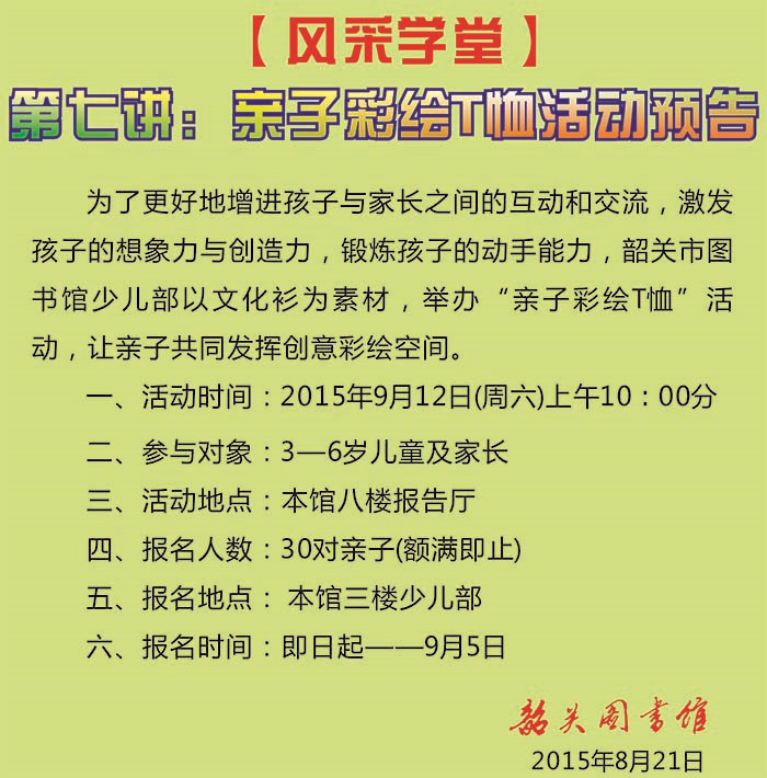 【风采学堂】第七讲:亲子彩绘T恤活动预告