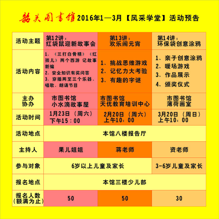 2016年1-3月【风采学堂】活动预告