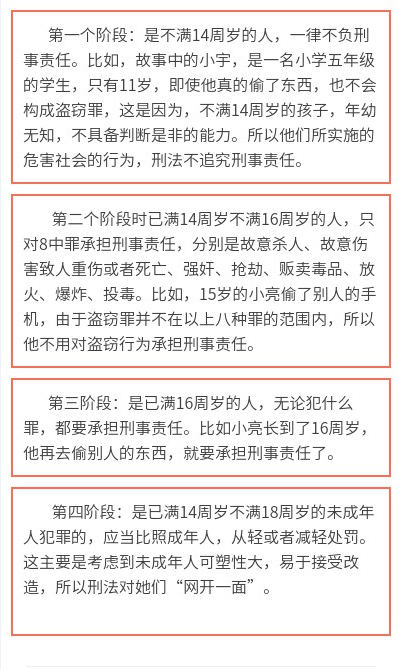白老师用故事为例子,向大家普及了承担刑事责任年龄的四个阶段。