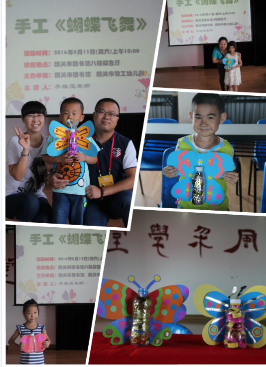 8月13日,由韶关市图书馆主办的【风采学堂】第20讲在我馆八楼报告厅开讲,本次活动的主题为手工制作《蝴蝶飞舞》。本次活动旨在锻炼孩子们的动手能力,促进亲子感情,孩子动手的同时也在动脑,制作手工的过程也是学习的过程,可以使孩子在游戏中愉快的学习。