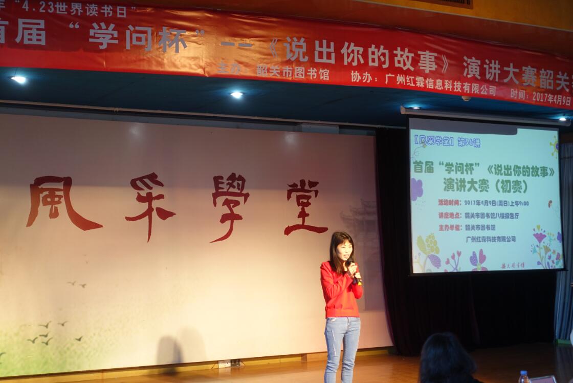 4月9日,为了迎接“4?23世界读书日”,我们联合韶关市各县(市、区)公共图书馆、高校图书馆以及广州红霖科技有限公司共同主办的“说出你的故事”演讲比赛在我馆八楼报告厅举行。本次比赛是韶关市图书馆赛区的选拔赛,最终会决出两位选手代表韶关市图书馆与来自其他赛区的高手们共同参加4月23日当天举行的“说出你的故事”总决赛。
