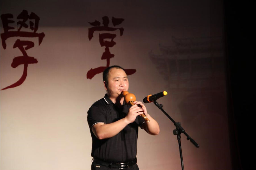 活动伊始,涂志民老师在讲台上就如何吹好葫芦丝、吹葫芦丝给人们带来的益处、吹葫芦丝的气息控制侃侃而谈。涂老师结合自身从艺经历,向在场的葫芦丝学员们传授葫芦丝演练的技巧,讲到精彩之处,涂老师拿起葫芦丝为观众们演练了一番,赢得掌声一片。