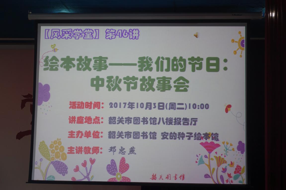 10月3日上午,韶关市图书馆八楼报告厅热闹非凡,这是我馆携手安的种子绘本馆主办的【风采学堂】第46讲:绘本故事——我们的节日:中秋节故事会。在中秋佳节来临之际,让小朋友们了解中秋节的来历,体会传统节日的魅力。