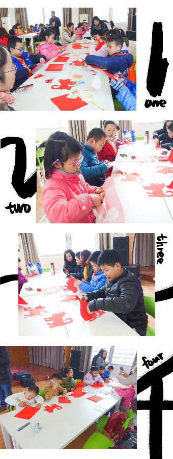 然后小朋友们在家长的协力下,开动双手一起剪纸了。