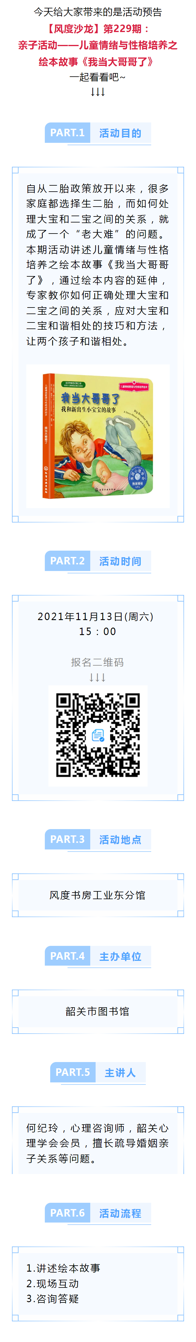 活动预告丨【风度沙龙】第229期:亲子活动——儿童情绪与性格培养之绘本故事《我当大哥哥了》