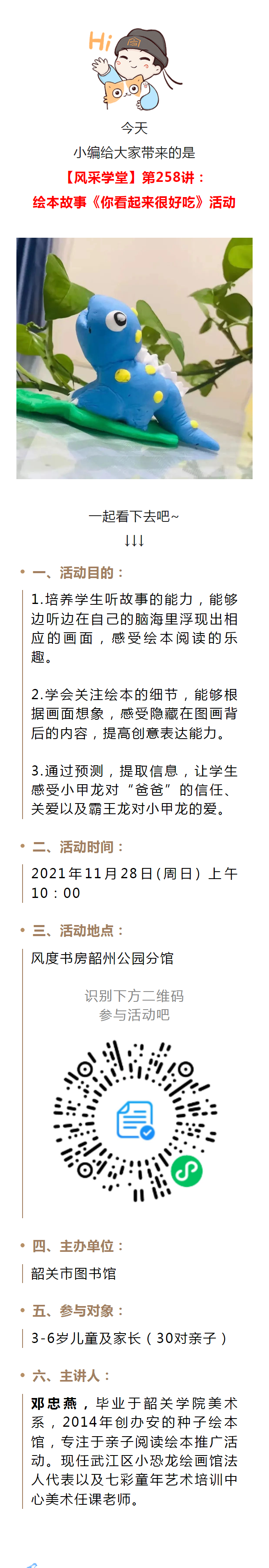 活动预告 |【风采学堂】第258讲:绘本故事《你看起来很好吃》活动