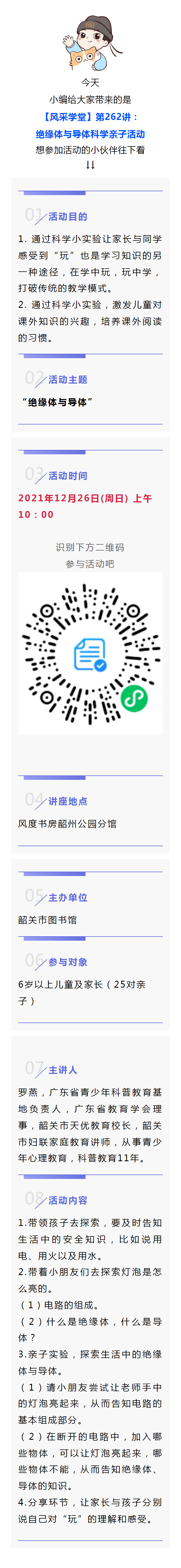活动预告 |【风采学堂】第262讲:绝缘体与导体科学亲子活动