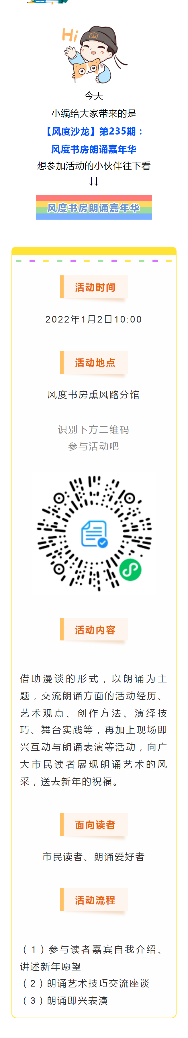 活动预告丨【风度沙龙】第235期:风度书房朗诵嘉年华