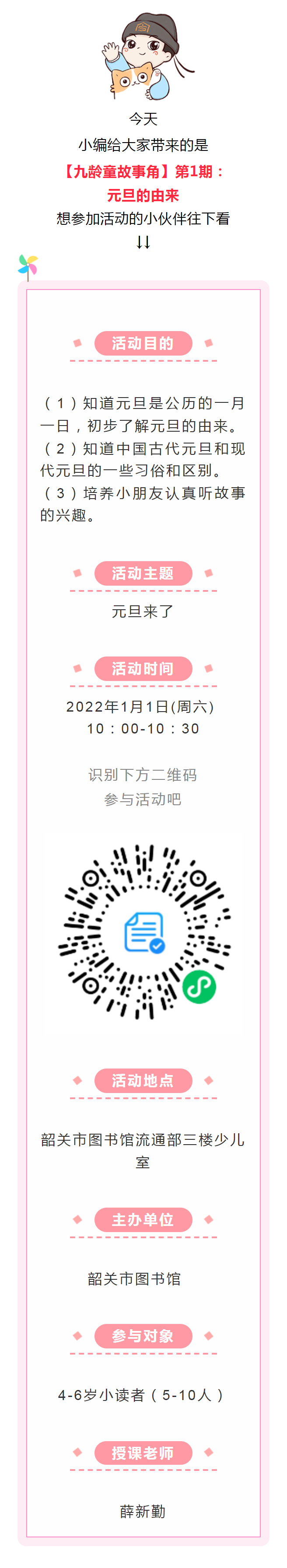 活动预告丨【九龄童故事角】第1期:元旦的由来