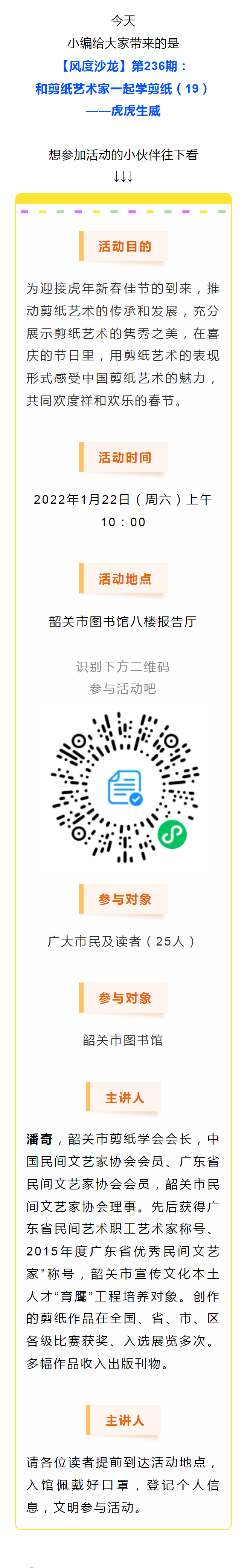 活动预告丨【风度沙龙】第236期:和剪纸艺术家一起学剪纸(19)——虎虎生威