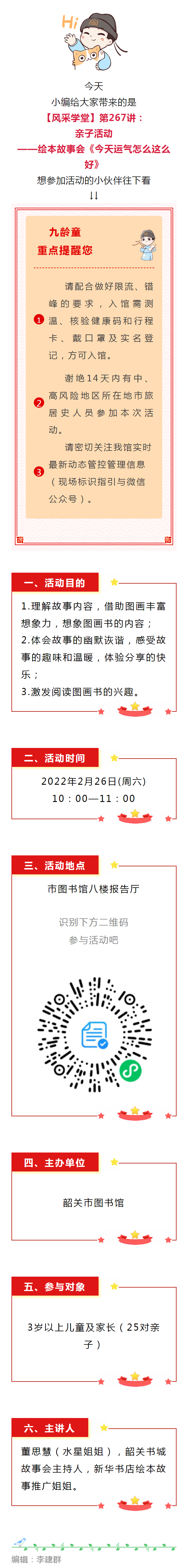活动预告丨【风采学堂】第267讲:亲子活动——绘本故事会《今天运气怎么这么好》