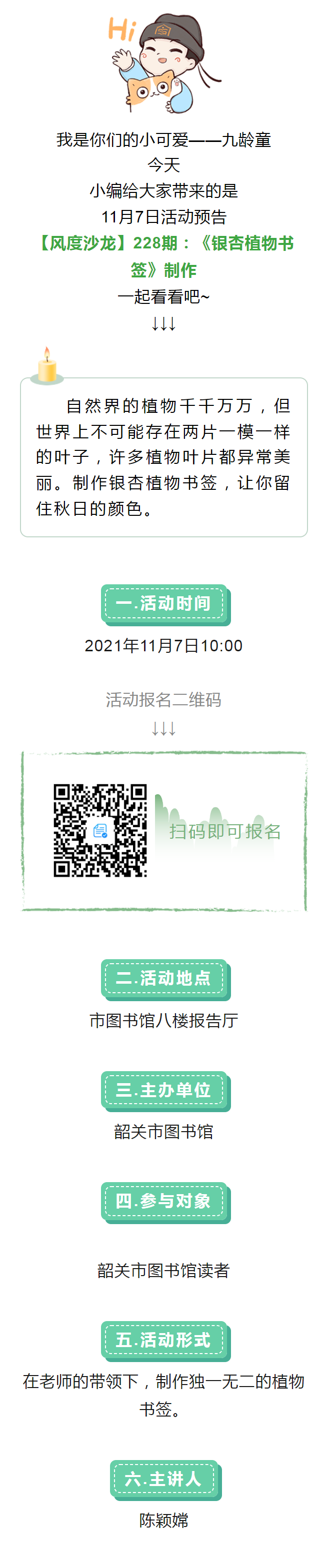 活动预告丨【风度沙龙】第228期:《银杏植物书签》制作