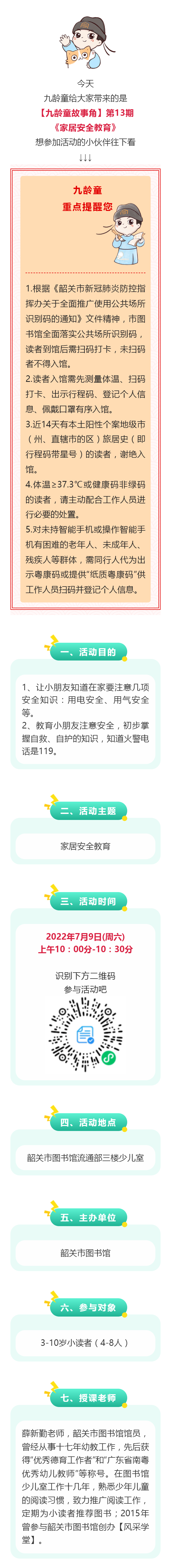 活动预告丨【九龄童故事角】第13期:《家居安全教育》