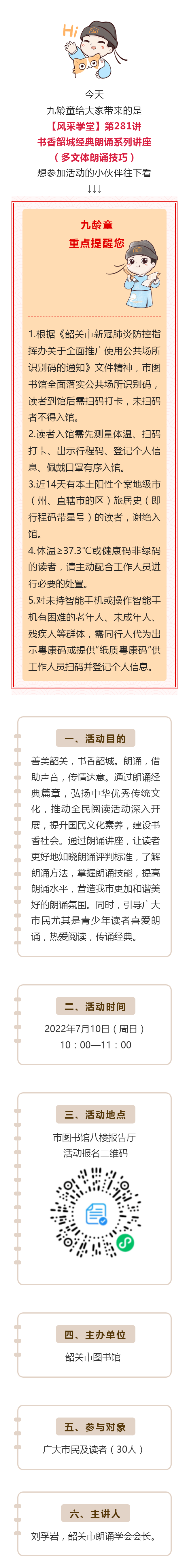 活动预告丨【风采学堂】第281讲:书香韶城经典朗诵系列讲座(多文体朗诵技巧)