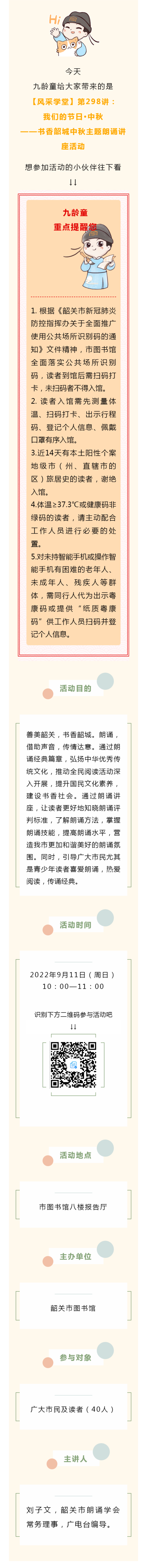 活动预告 | 【风采学堂】第298讲:我们的节日·中秋——书香韶城中秋主题朗诵讲座活动